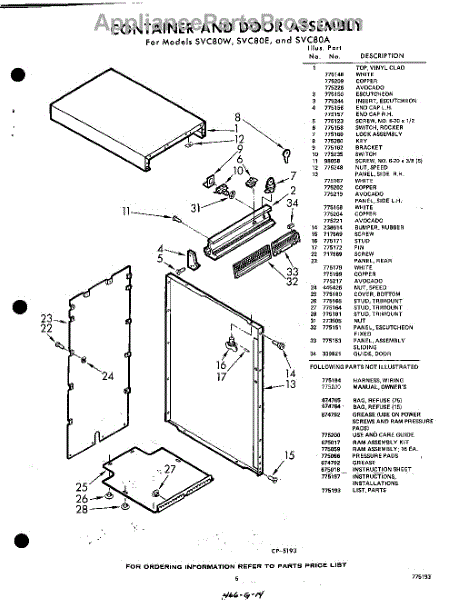 Parts for Whirlpool SVC80W: 05 - Container And Door , Lit / Optional Parts
