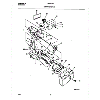This auger motor powers the ice dispenser, rotating the ice-bin auger to feed cubes or crushed ice to the door chute. A failed motor stops dispensing, leaving ice in the bucket when the paddle or lever is pressed.