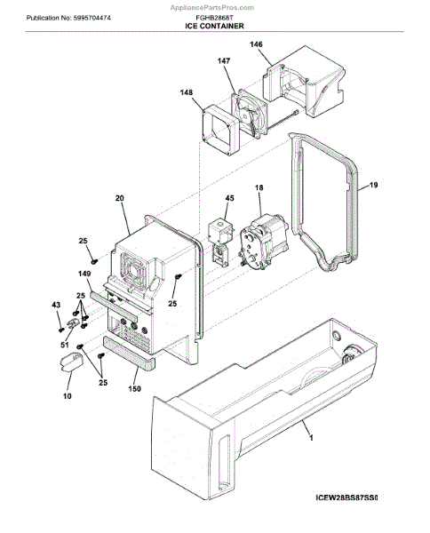 Restore reliable dispensing with this replacement ice container assembly. It stores the ice beneath the icemaker and feeds it to the dispenser, replacing cracked or worn bins that cause jams, noise, or poor ice delivery.