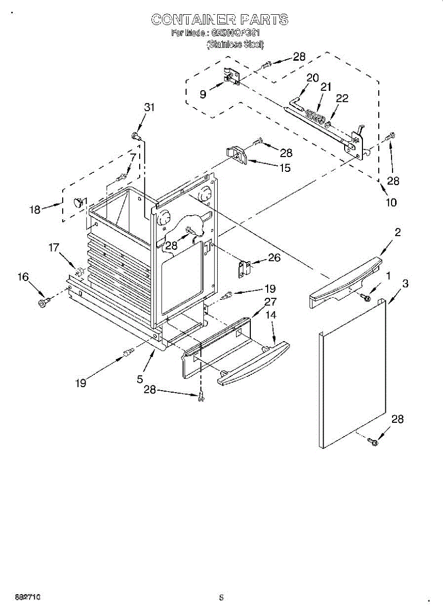 Front guard plate for trash compactors. Protects the compactor front panel from damage. Replace if cracked, torn, or worn to restore appearance.