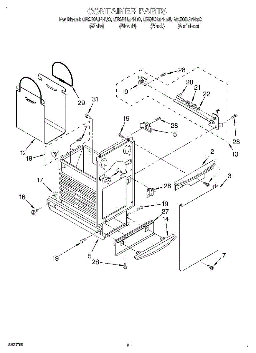 Biscuit-colored front panel for trash compactor container. Replace this decorative trim piece if cracked, discolored, or damaged to restore appearance.