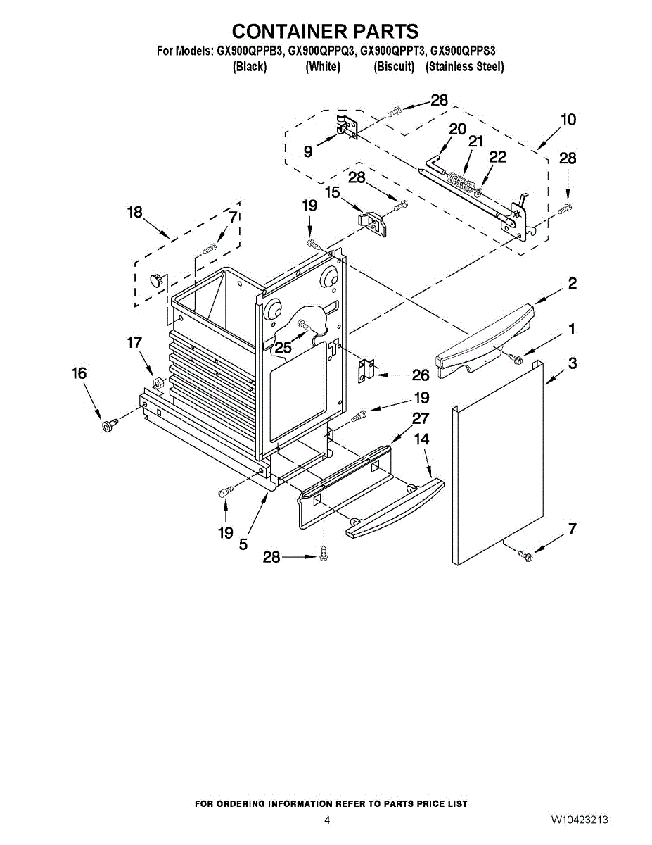 Biscuit-colored front panel for trash compactor container. Replace this decorative trim piece if cracked, discolored, or damaged to restore appearance.