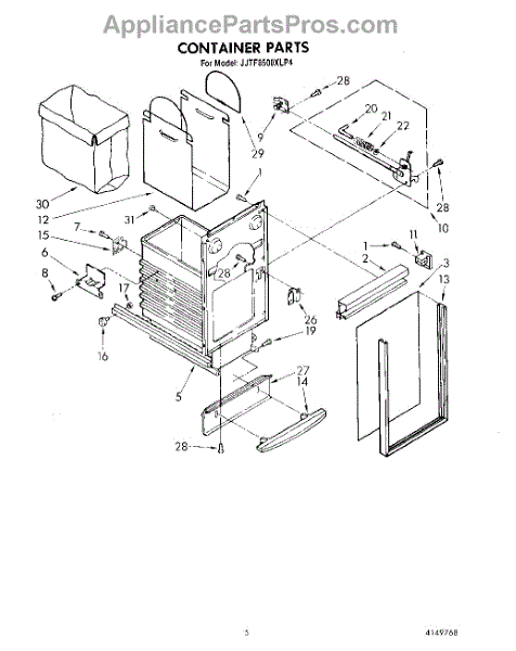 The Compactor Bag Caddy is an OEM component specifically designed for Whirlpool trash compactors. This caddy holds trash compactor bags securely in place during the compaction process. It measures about 8 inches wide by 16 inches high by 11 inches deep. Symptoms of a bad compactor bag caddy include: