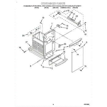 Decorative front panel for trash compactor. Installs over container basket to update appearance. Replace if cracked, dented, scratched, or missing.