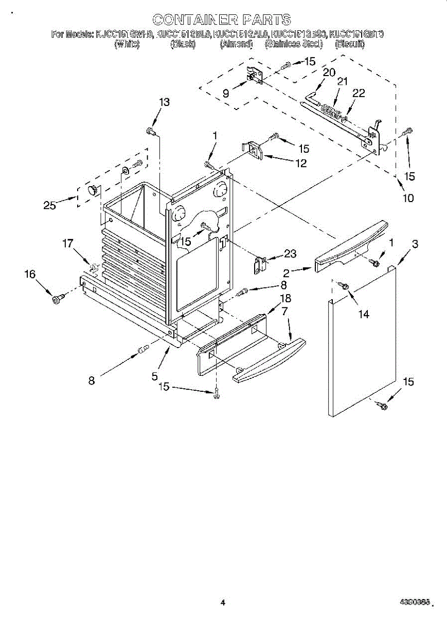 Biscuit-colored front panel for trash compactor container. Replace this decorative trim piece if cracked, discolored, or damaged to restore appearance.