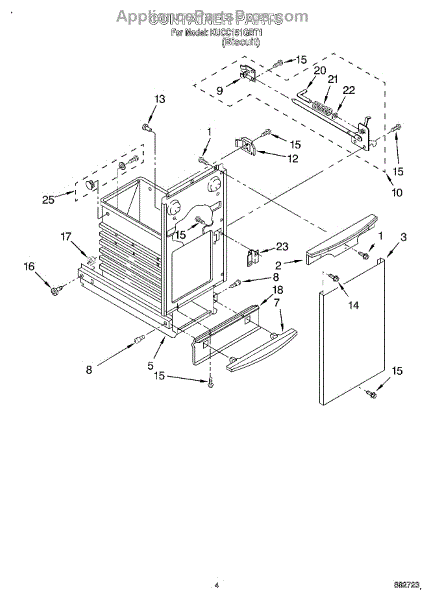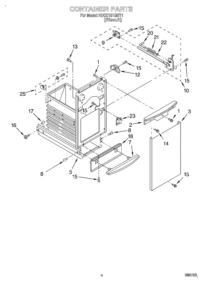 Biscuit-colored front panel for trash compactor container. Replace this decorative trim piece if cracked, discolored, or damaged to restore appearance.