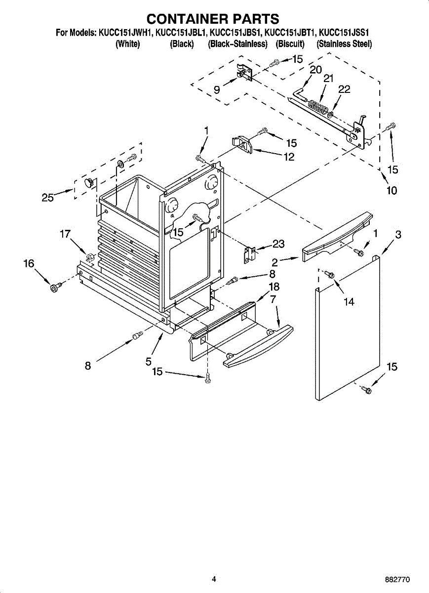Biscuit-colored front panel for trash compactor container. Replace this decorative trim piece if cracked, discolored, or damaged to restore appearance.