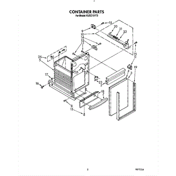 Front guard plate for trash compactors. Protects the compactor front panel from damage. Replace if cracked, torn, or worn to restore appearance.