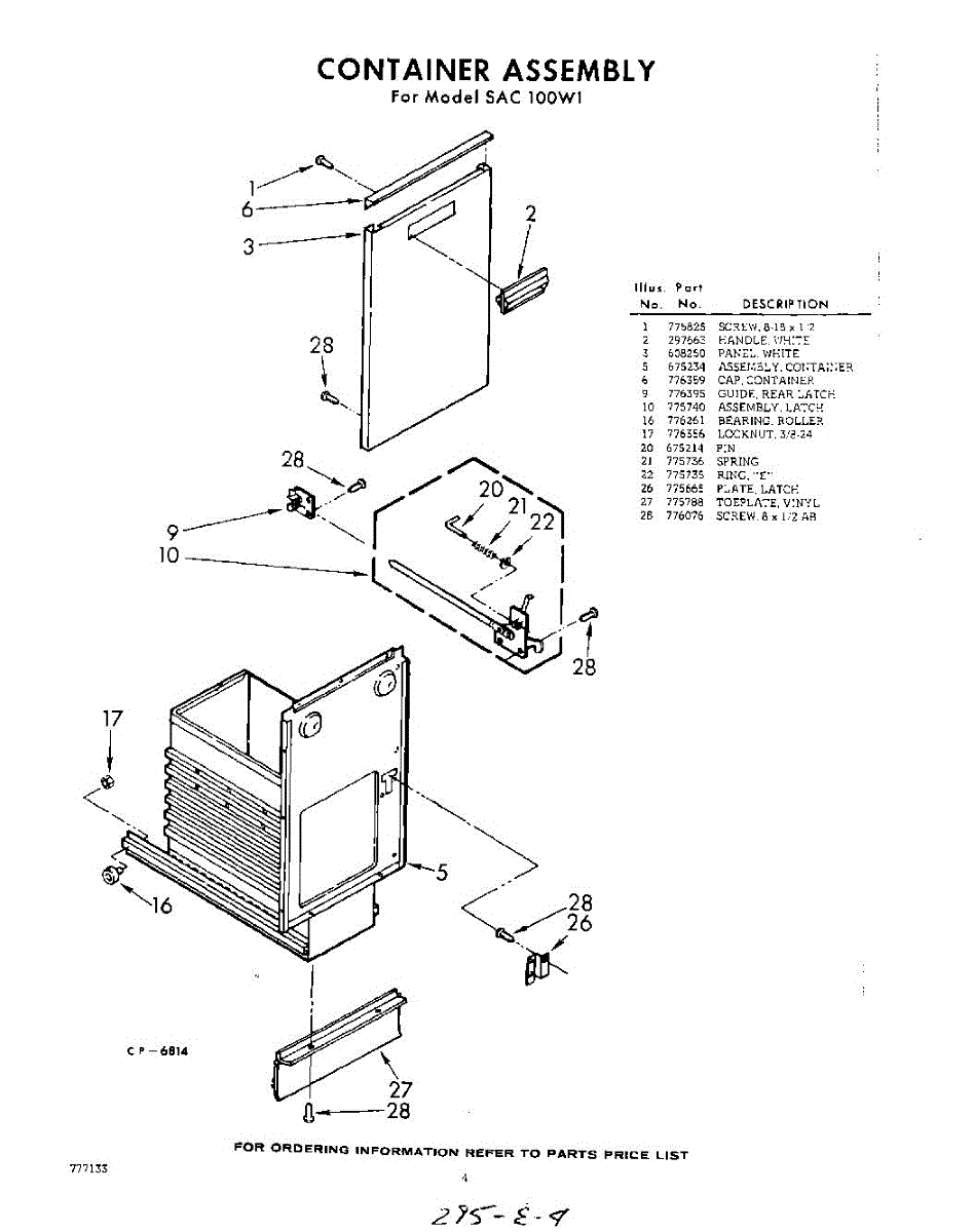 Parts for Whirlpool SAC100W1: 04 - Container Parts