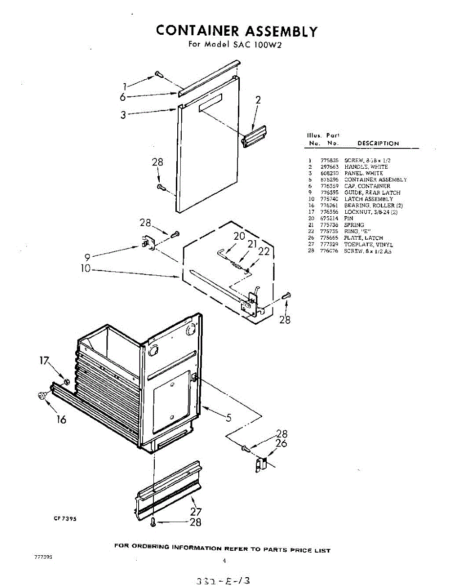 Parts for Whirlpool SAC100W2: 04 - Container Parts