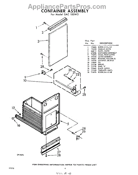 Parts for Whirlpool SAC100W3: 04 - Container Parts