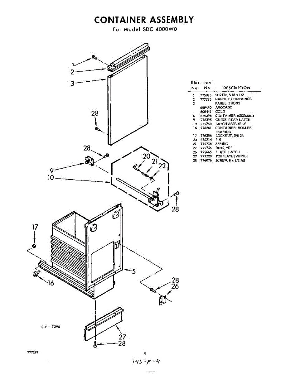 Parts for Whirlpool SDC4000W0: 04 - Container Parts