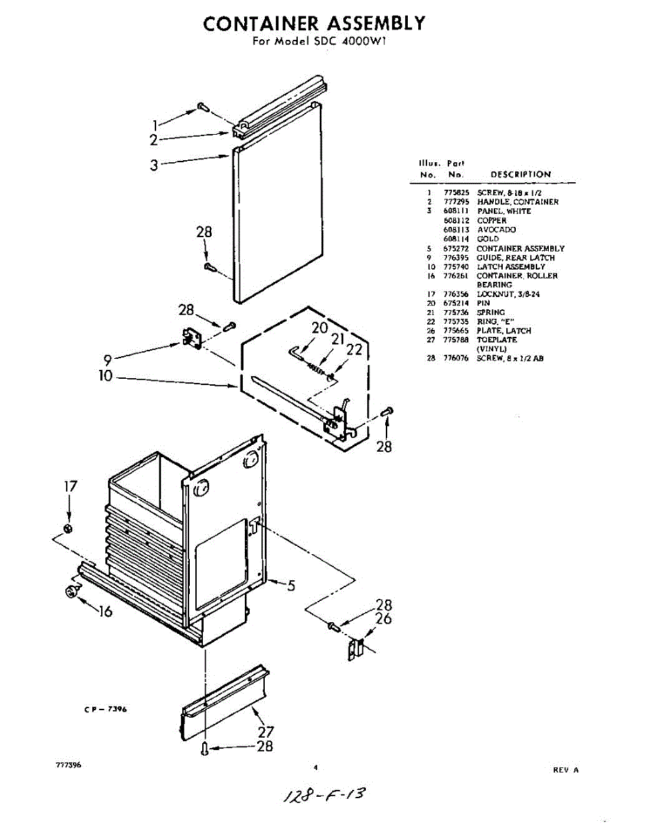 Parts for Whirlpool SDC4000W1: 04 - Container Parts