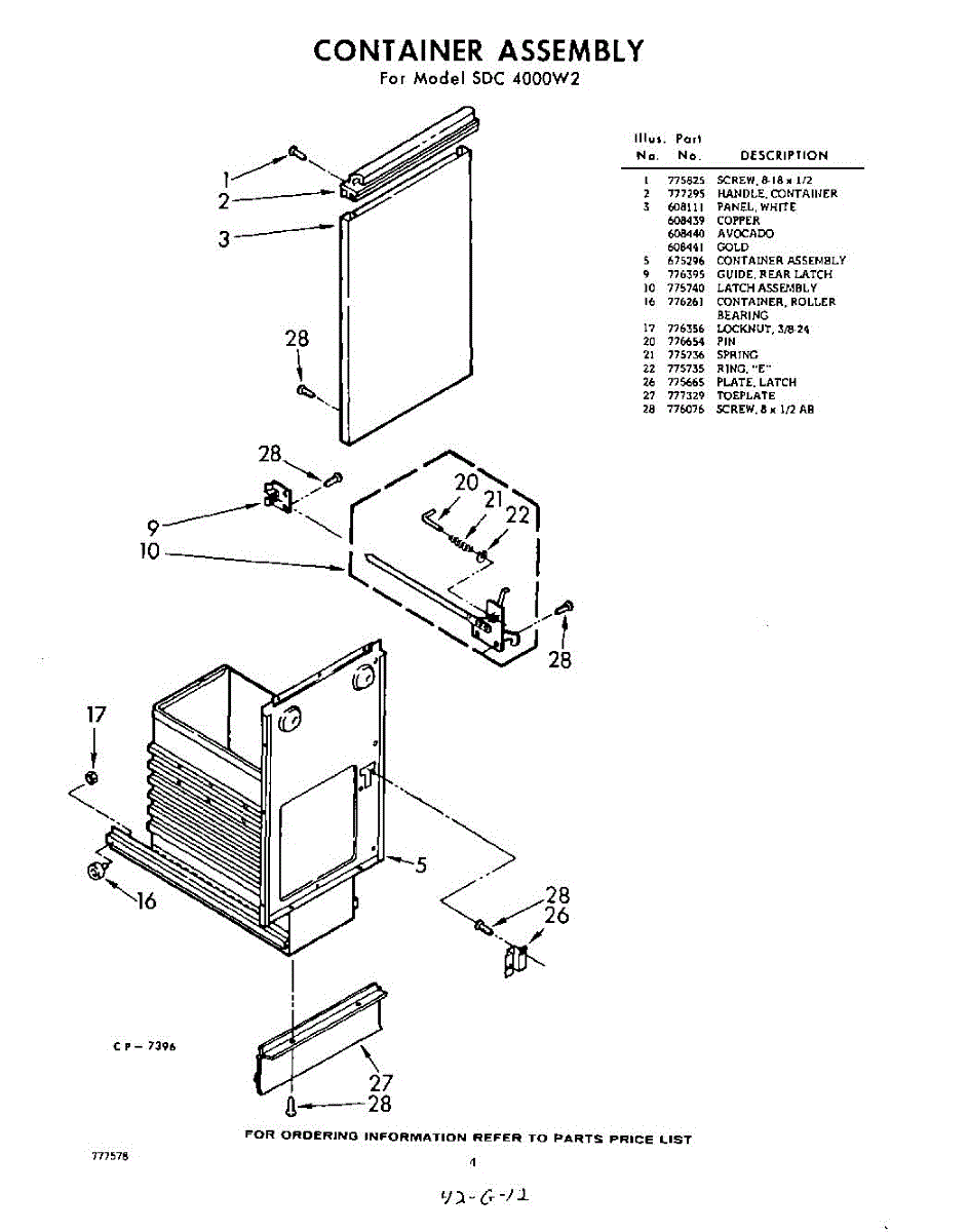 Parts for Whirlpool SDC4000W2: 04 - Container Parts