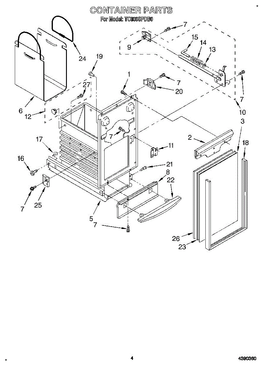 Bag carrier handle assembly for trash compactors. Secures the disposable liner bag in place. Replace if cracked, broken, or missing to restore safe bag handling.