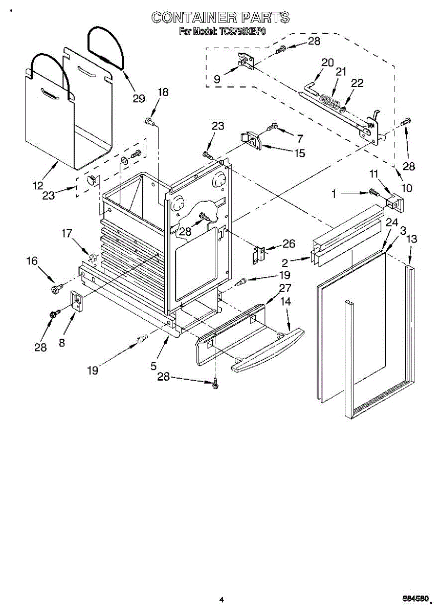 Front guard plate for trash compactors. Protects the compactor front panel from damage. Replace if cracked, torn, or worn to restore appearance.