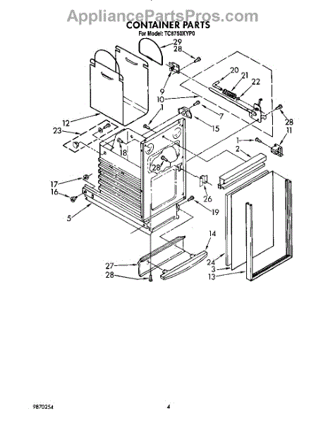 Parts for Whirlpool TC8750XYP0: 04 - Container Parts