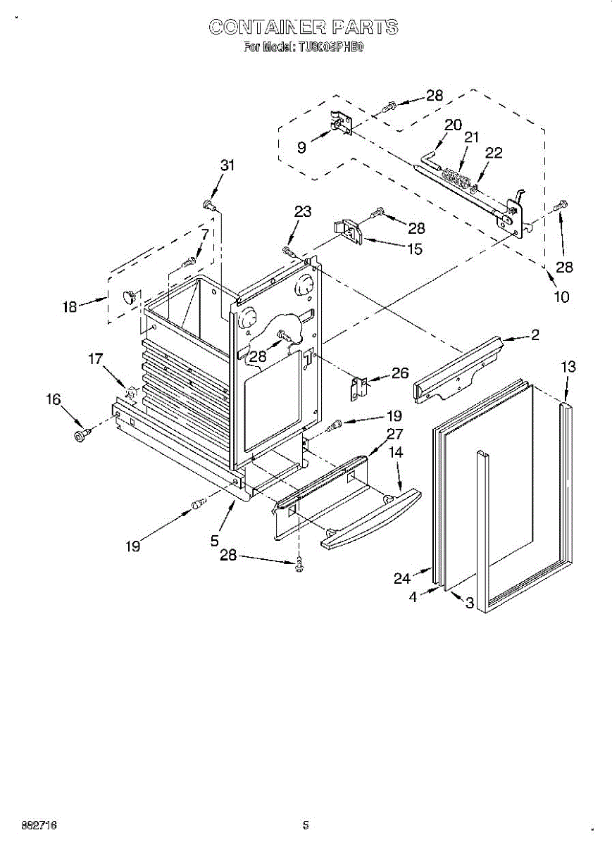 Front guard plate for trash compactors. Protects the compactor front panel from damage. Replace if cracked, torn, or worn to restore appearance.