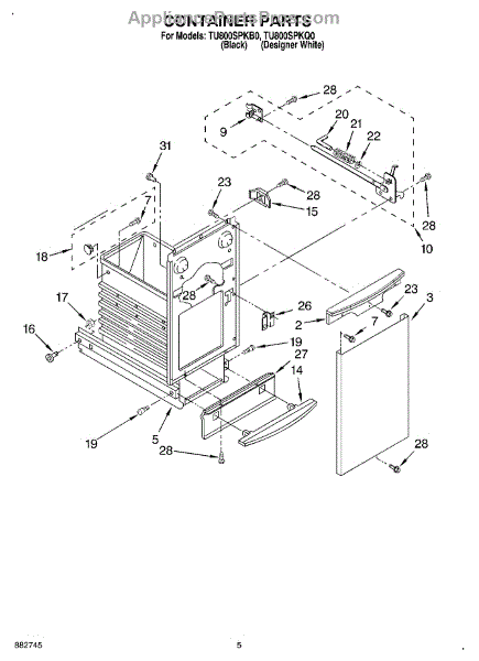 Replacement fastener screw for appliances. Secures panels, trim, clips, and components. Needed when original screws are stripped, missing, or damaged.