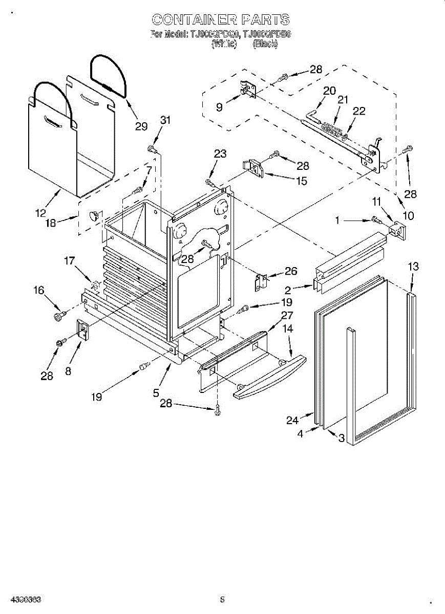 Protective guard for trash compactors. Shields internal components from debris and impact. Replace if cracked, broken, or missing to maintain proper function.