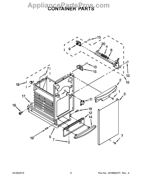 This replacement container restores a secure, factory-fit compartment in your appliance. Install a new container when the original is cracked or broken to keep contents properly held and nearby parts aligned as designed.