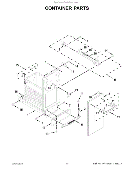 This replacement container restores a secure, factory-fit compartment in your appliance. Install a new container when the original is cracked or broken to keep contents properly held and nearby parts aligned as designed.