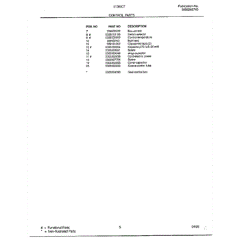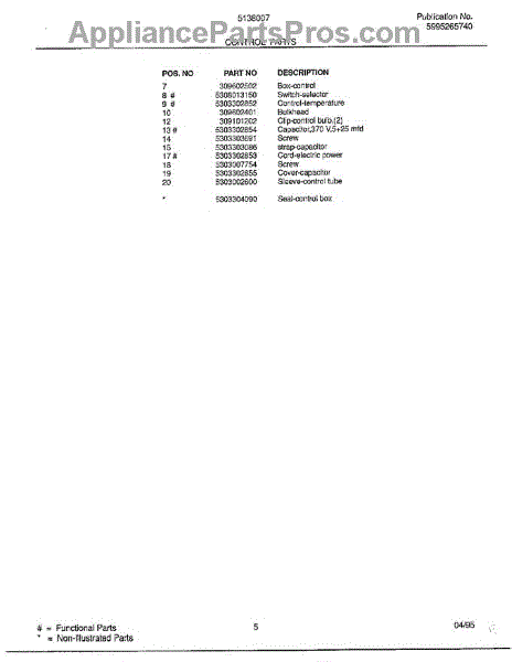 Parts for Frigidaire 5138007: Control Parts