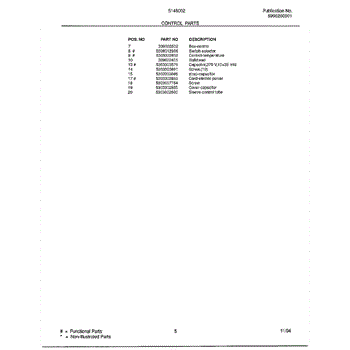 Parts for Frigidaire 5146002: Control Parts