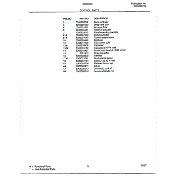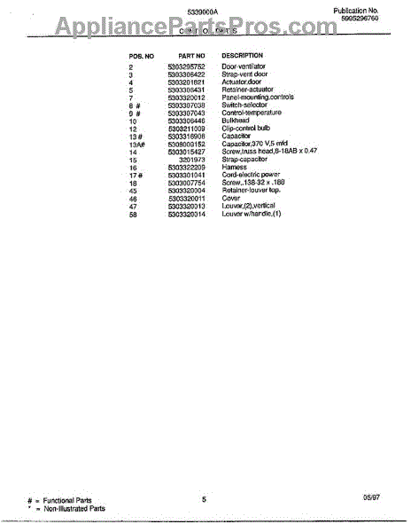 Parts for Frigidaire 5339000: Control Parts