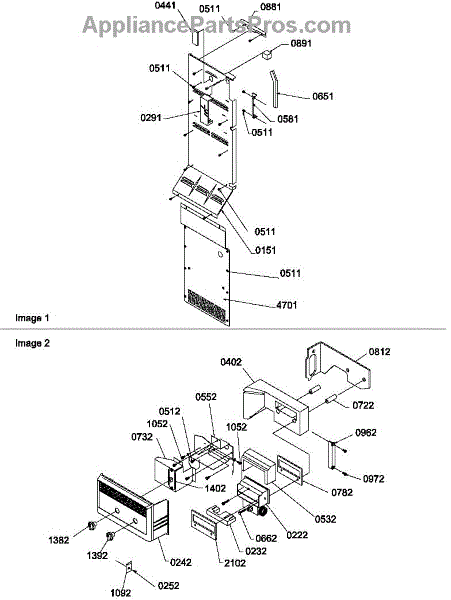 Parts for Amana SB520TW-P1308601W: Control Assembly Parts