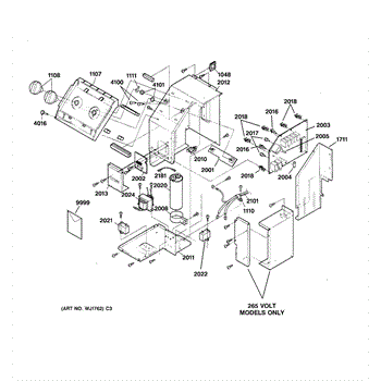 Spacer component for room air conditioners. Installs between internal parts to maintain proper clearance. Replace if cracked, broken, or missing.