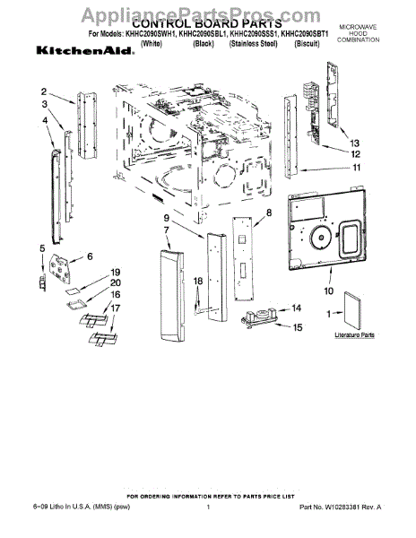 Parts for Kitchenaid KHHC2090SBT1: 01 - Control Board Parts