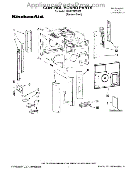 Parts for Kitchenaid KHHC2090SSS2: 01 - Control Board Parts
