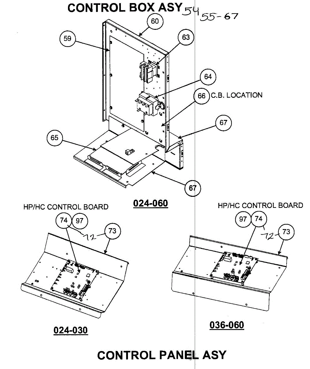 Parts for Carrier 50XT036300: Control Box / Control Panel Assy Parts