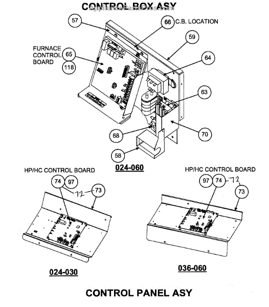 Parts for Carrier 48DTN036060300: Control Box / Panel Assy Parts