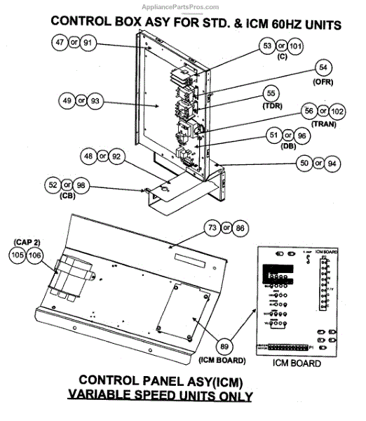 Parts for Carrier 50JZ036300: Control Box Parts