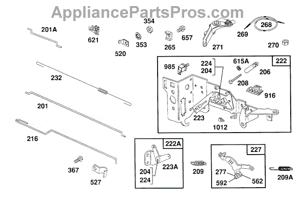 Parts for Briggs & Stratton 261777-0126-02: Control Bracket Assembly Parts