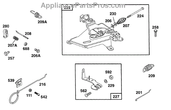 Parts for Briggs & Stratton 402447-1225-01: Control Bracket Parts