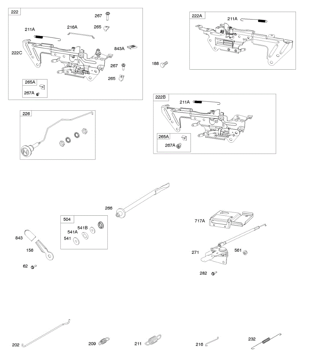 Parts for Briggs & Stratton 542477-0124-E1: Control Brackets, Springs, Throttle Levers Parts