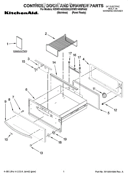 Parts for Kitchenaid KEWS145SSS02: 01 - Control, Door And Drawer Parts