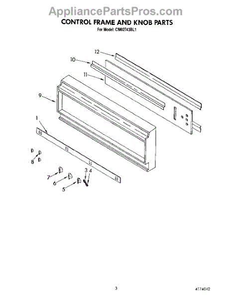 Parts for Whirlpool CM02743BL1: 03 - Control Frame And Knob Parts
