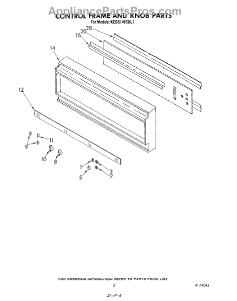 Parts for Kitchenaid KEBS146SBL1: 03 - Control Frame And Knob Parts