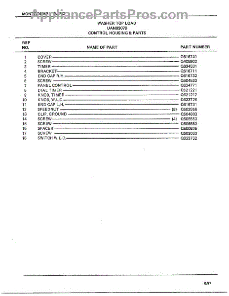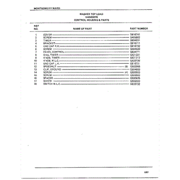Parts for Frigidaire 6307B: Control Housing And Parts