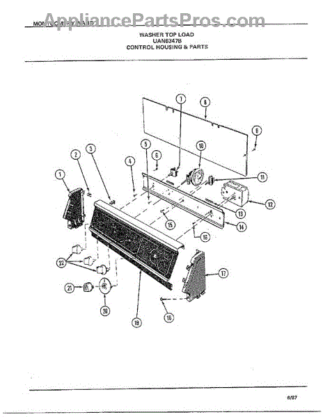 Parts for Frigidaire 6347B: Control Housing And Parts