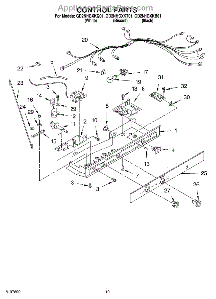Parts for Whirlpool GD2NHGXKB01: 12 - Control Parts