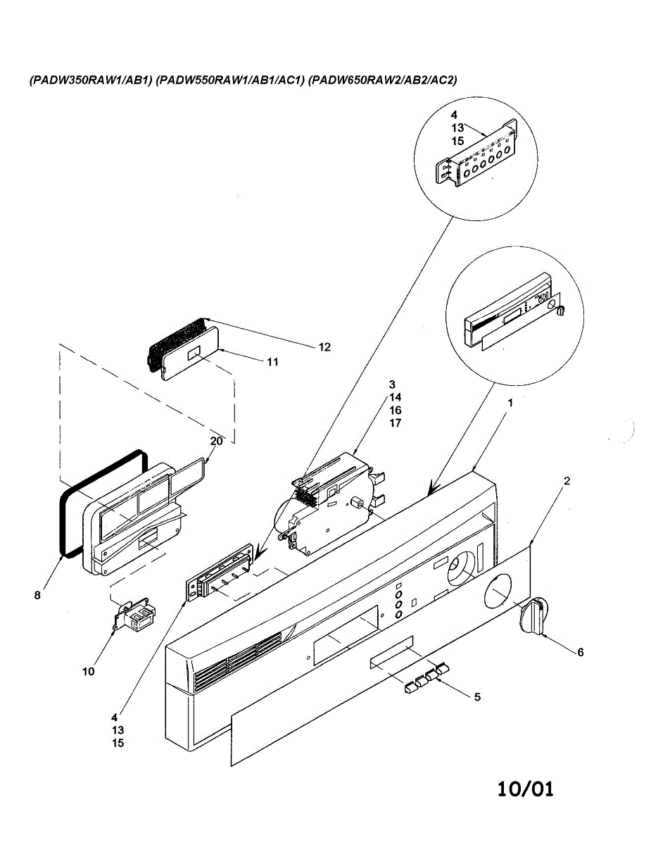 Parts for Amana ADW650RAB-PADW650RAB2: Control Panel (I) Parts