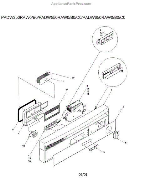 Parts for Amana ADW850EAS-PADW850EAS0: Control Panel Parts