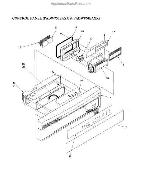 Parts for Amana ADW850EAW-PADW850EAW1: Control Panel (Padw750eaxx / 850Eaxx) Parts