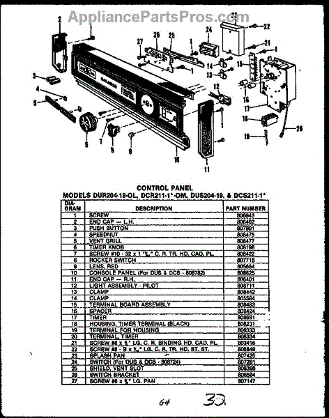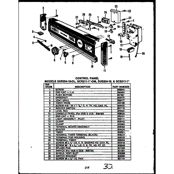 Parts for Caloric DCS215-1H: Control Panel (Dus204-19) (Dur204-19-Ol) (Dcs211-1C) (Dcs211-1A) (Dcs211-1H) (Dcs211-1W) (Dcs211-1L) (Dcr211-1A-Om) (Dcr211-1W-Om) (Dcr211-1L-Om) (Dcr211-1C-Om) (Dcr211-1H-Om) Parts