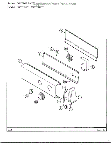 Parts for Maytag LNC7731A71: Control Panel Parts